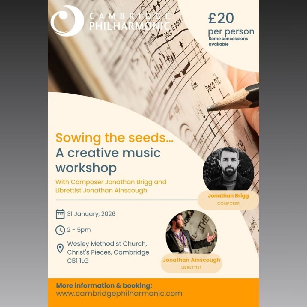 What’s On season 2025-26 Read and Download our 2025-26 Brochure HERE ‘Berlioz L’Enfance du Christ’ Saturday 20 December 2025, 4pm west road concert hall, cambridge Read more Lucy’s ocean adventure! Saturday 17 January 2026, 2 and 4pm West Road Concert Hall, Cambridge Read more Sowing the Seeds... Saturday 31 Jan 2026, 2-5pm Westley Methodist Church, Cambridge Read more Dvořák Requiem Saturday 14 March 2026, 4pm West road concert hall, Cambridge Read more Shostakovich 5 Saturday 23 May 2026, 4pm West Road Concert Hall, Cambridge Read more A Sea Symphony Sunday 5 July 2026, 4pm Saffron Hall, Saffron Walden Read more Philharmonic friends Become a Cambridge Philharmonic Friend and join a world of musical magic! Find out more Sign up to our newsletter HERE to be the first to hear about upcoming events Past Events For our full archive please click HERE 2025 - 26 season Duruflé Requiem Downing Place URC, Cambridge 18th Oct 2025 Respighi: Roman Trilogy West Road Concert Hall Sun 9 November 202 2024-25 Season The Rite of Spring West Road Concert Hall, Cambridge 9th November 2024 Nutcracker West Road Concert Hall, Cambridge. 14 December 2024, 2pm & 4pm Ode to Joy West Road Concert Hall, Cambridge. 18 January 2025, 4pm The Dream of Gerontius Saffron Hall, Saffron Walden. 1 March 2025, 5pm Lucy's Race to Space! West Road Concert Hall, Cambridge. Sat 15 March 2025 2 & 4pm Refuge West Road Concert Hall, Cambridge. Sat 24 May 2025 7.30pm Peter Grimes Saffron Hall, Saffron Walden. Sat 5 July 2025, 4pm 2023-24 Season Turandot Saffron Hall, Saffron Walden, 13th July 2024 MAgic of the movies West Road Concert Hall, Cambridge, 18th May 2024 Opera Workshop The Church of the Good Shepherd, Cambridge 11th May, 2024 Elijah Saffron Hall, Saffron Walden 2nd March 2024 Storybook Live West Road Concert Hall, Cambridge 13th Jan, 2024 Stabat mater West Road Concert Hall, Cambridge 9th Dec 2023 Mahler 5 West Road Concert Hall, Cambridge 4th November, 2023 FOR OUR FULL ARCHIVE CLICK HERE