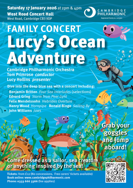 Join Lucy as she sets sail on a magical journey beneath the waves. With music inspired by the sea, storytelling and plenty of surprises, this fun-filled concert will spark imaginations and introduce children to the wonders of orchestral sound. Grab your goggles and jump aboard!
